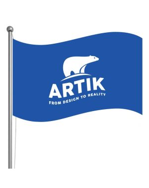 Digital printing at Artik is perfect for economic, high quality, full colour prints on custom flags. Contact one of our friendly customer service reps and get your project underway! Contact us for custom width, 5' max height. Shop here, or contact our custom embroidery and screen printing company here.