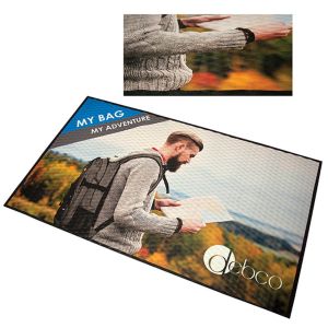 Artik offers high-quality Custom Printed Promotional Floor Mats designed for durability and visual appeal. Featuring a robust polyester fabric carpet surface (27 oz./sq. yd.) with sturdy rubber backing and borders (overall 50 mil thickness), these mats are built to last. The state-of-the-art digital printing utilizes a vibrant palette of 60 colours to bring your custom designs to life sharply. Plus, with yarn containing 50% recycled plastic bottles, they're an eco-friendlier choice. Practicality is key – these mats are stain-resistant and easy to clean by vacuuming, hosing off, or steam cleaning.