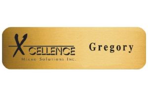 Custom Printed Name Tags. Scroll down for a selection of shapes and sizes in metal name badges. Fast turn around is the main advantage of this category. Your company logo and name and title all custom printed on quality metal badges. Personalized name badges send a message that this is a friendly and professional organization.