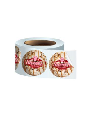 Custom paper stickers printed digitally in full colour finishes with glossy varnish. The stickers comes in a roll. Digital custom labels offer attractive solutions for product labeling and packaging. Ideal for food products, bottles, cosmetic products and other commercial or retail promotions. We offer a variety of shapes and sizes.